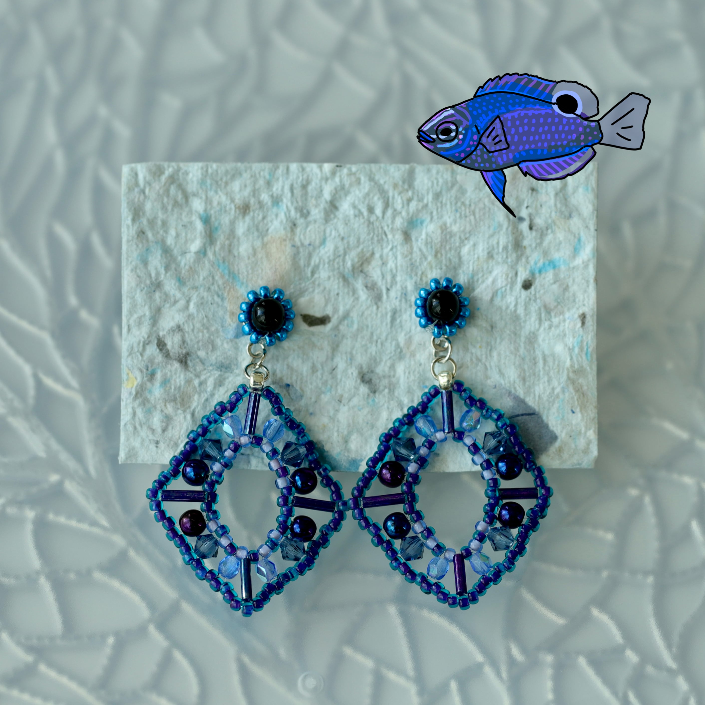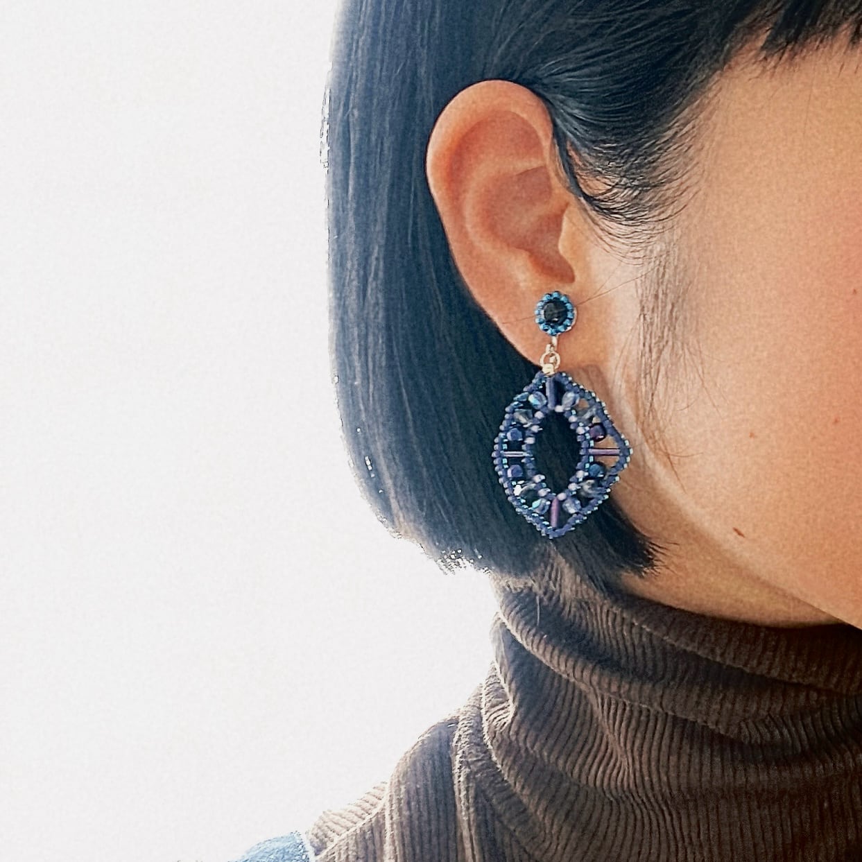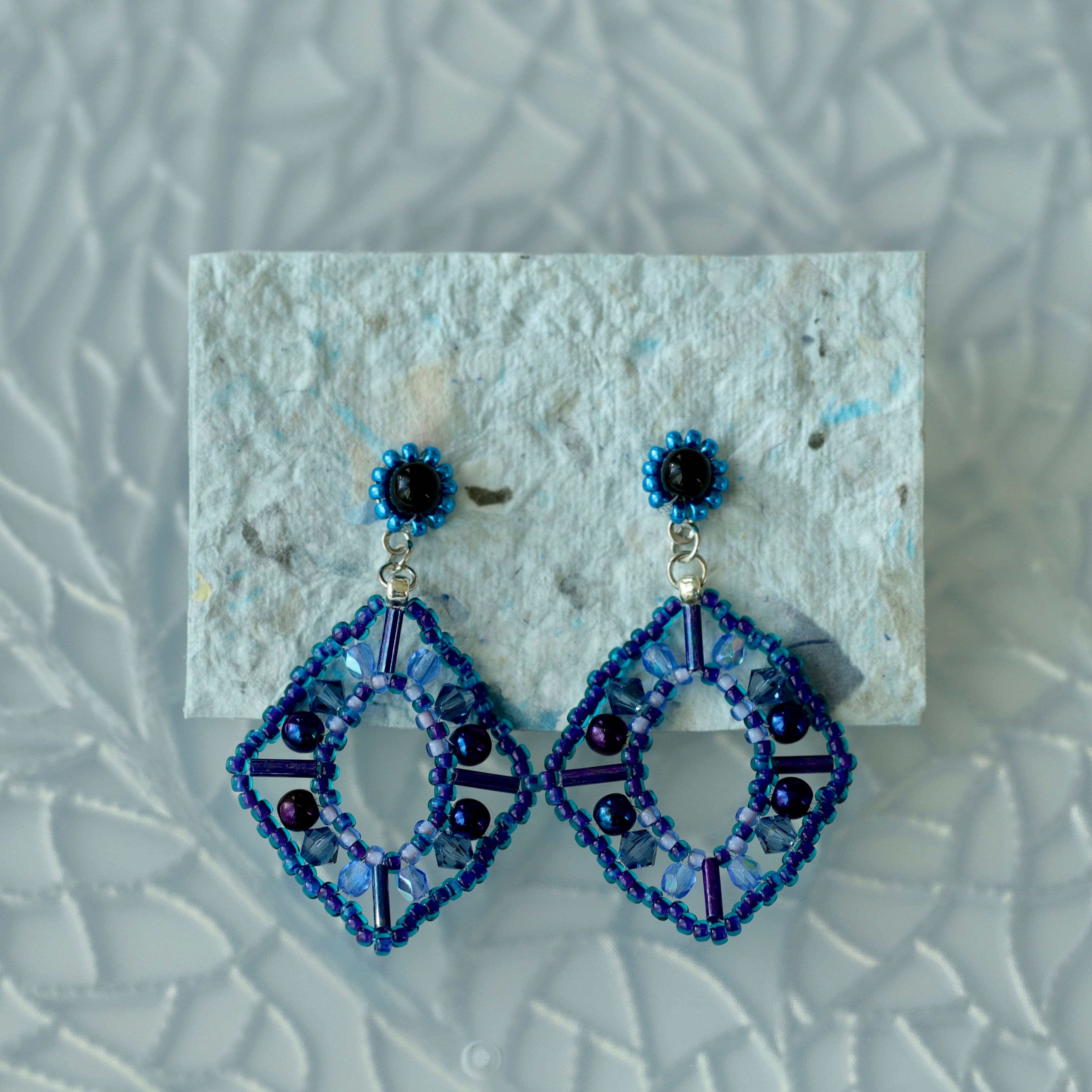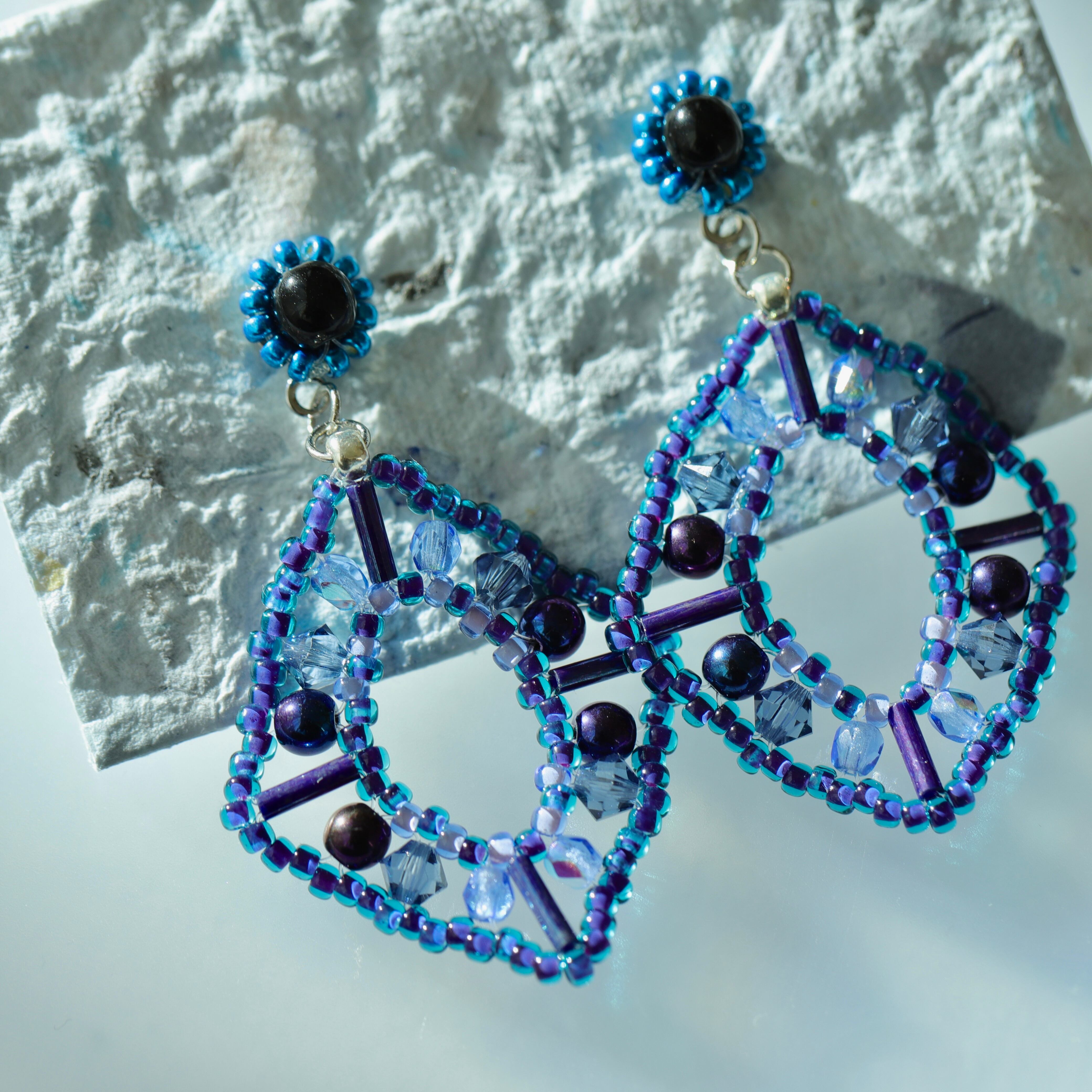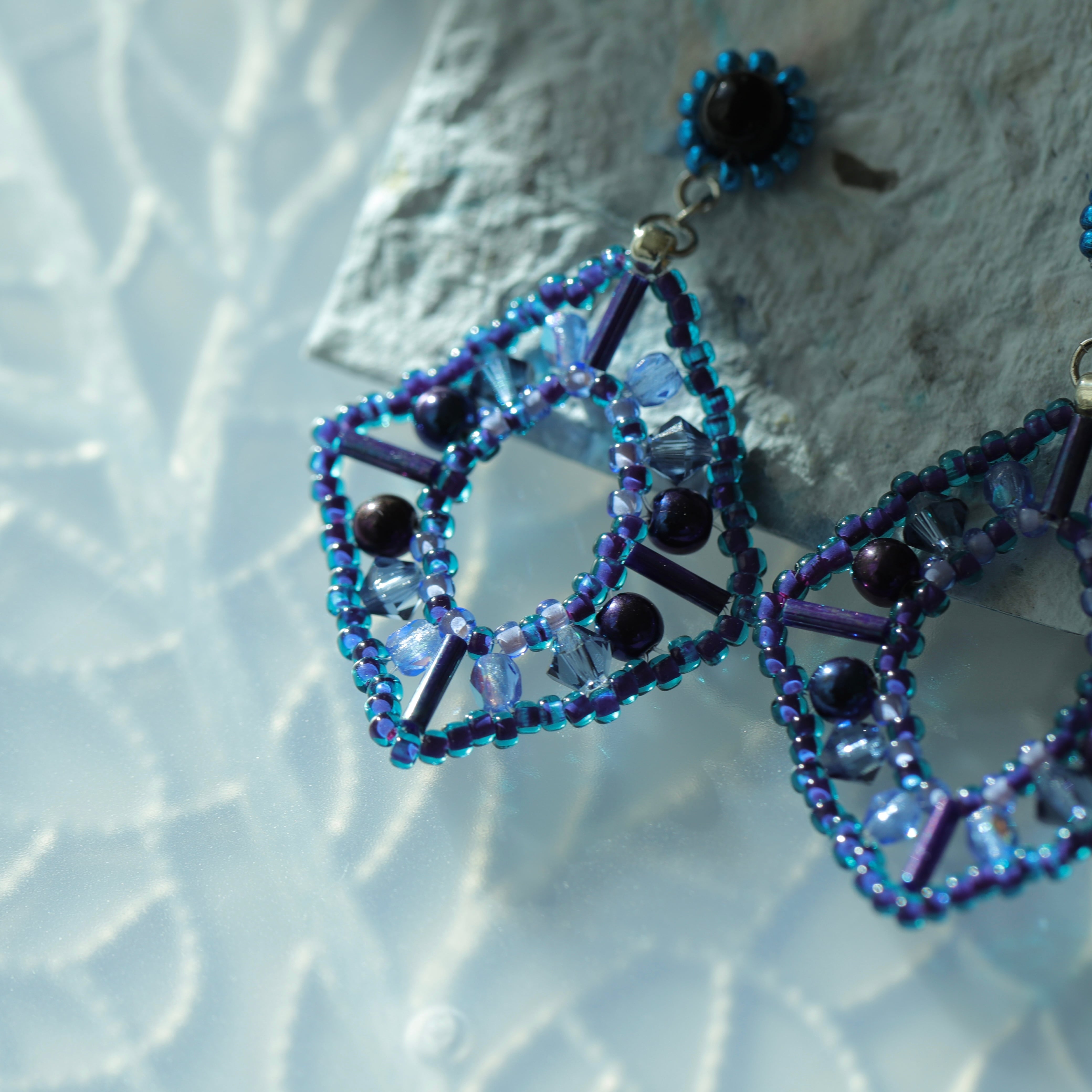 様々な形の寒色ビーズを編んで