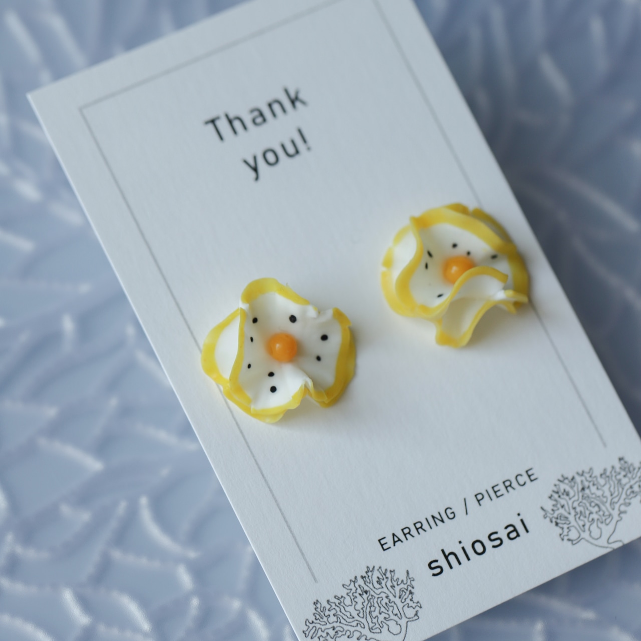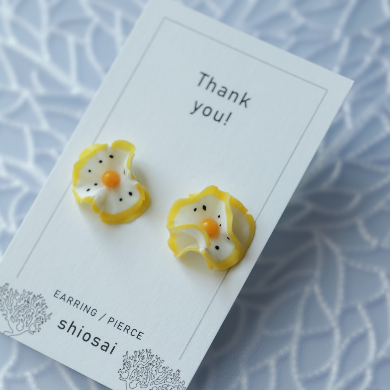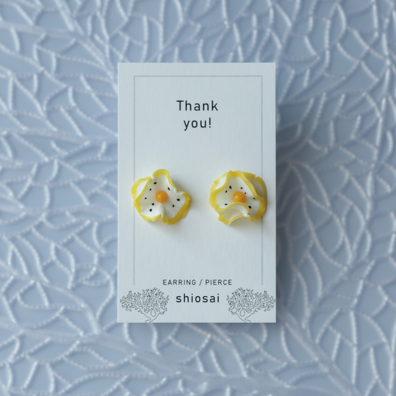 高さ 約 1 cm、お花 約 2.5 cm × 2.5 cm