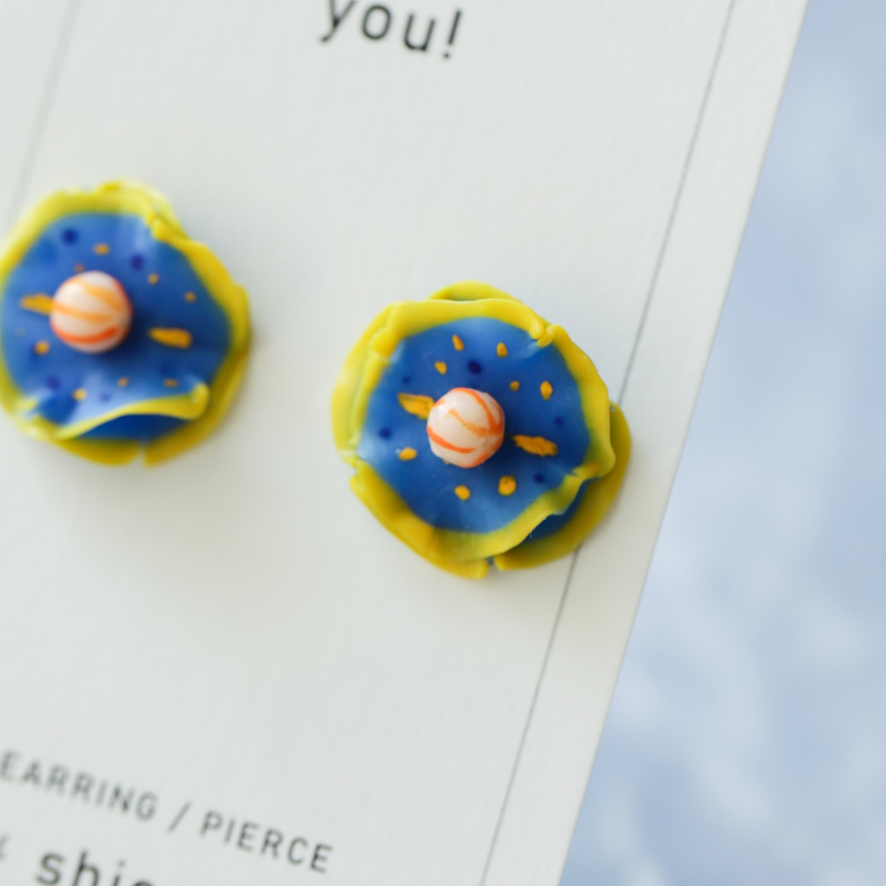 高さ 約 1 cm、お花 約 2.5 cm × 2.5 cm