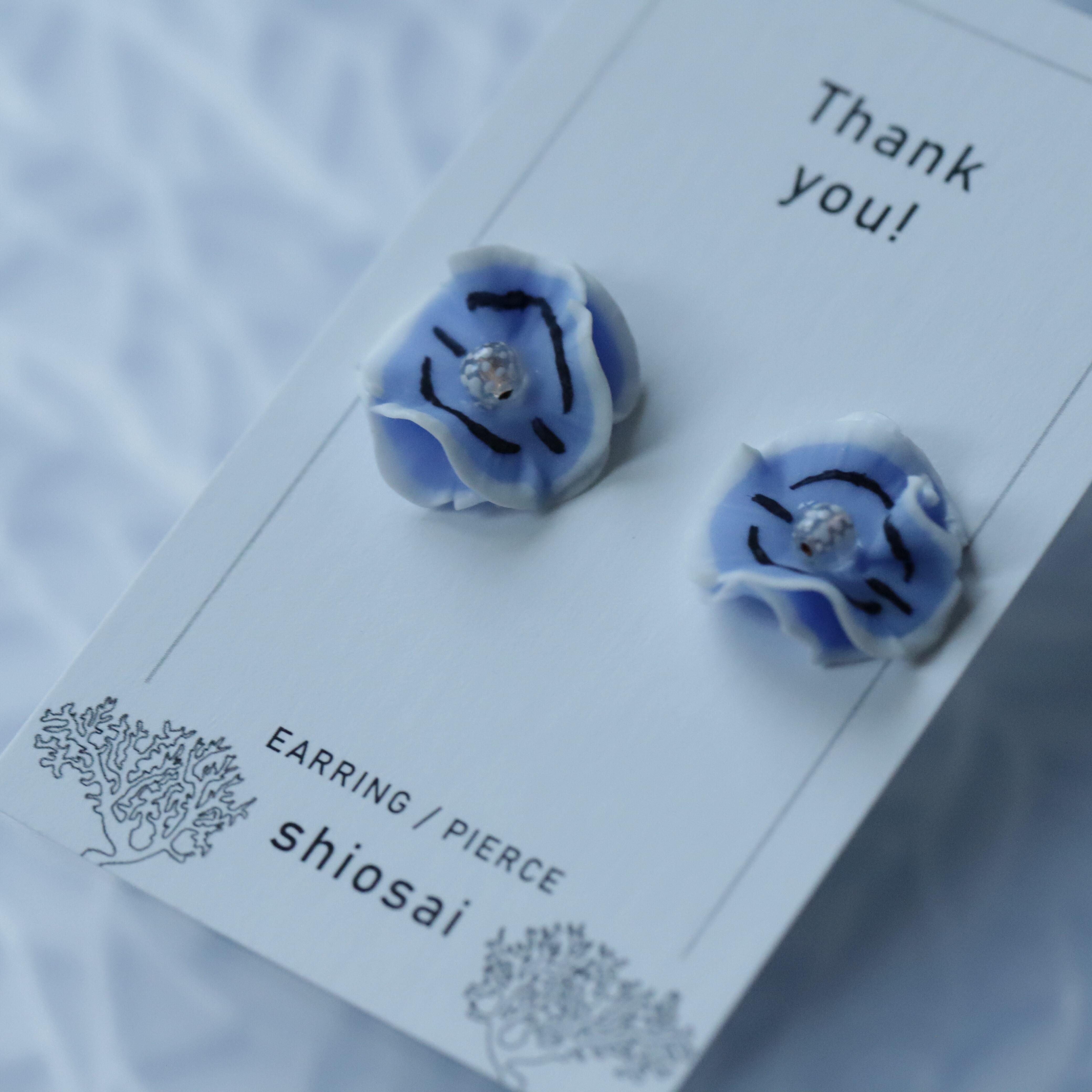 高さ 約 1 cm、お花 約 2.5 cm × 2.5 cm